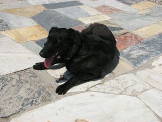 プロピライアの手前、係の人の飼い犬なんだかそれとも観光客が連れて来たのか、