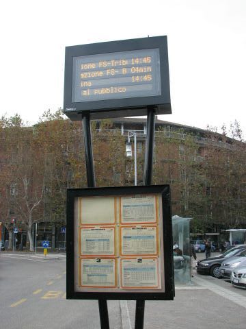 電光掲示板で、自分の行きたい方向のバスの時刻がすぐわかる。