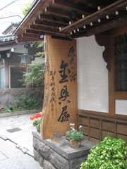 金具屋の看板。やはり昔ながらの旅館なので、宿泊客以外が入って利用できるような