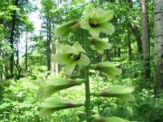 林の緑の中にこういう緑のユリがぬうっと出ていると、きれいというより少し不気味。