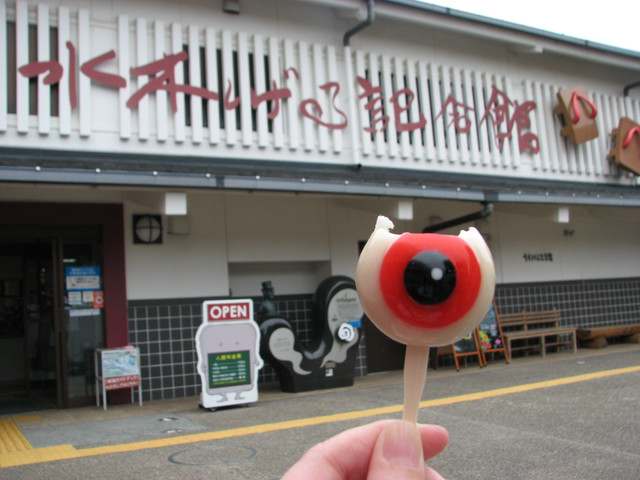 ……手前の不気味な物体は何かというと、記念館の隣で売っていた目玉おやじの和菓子。