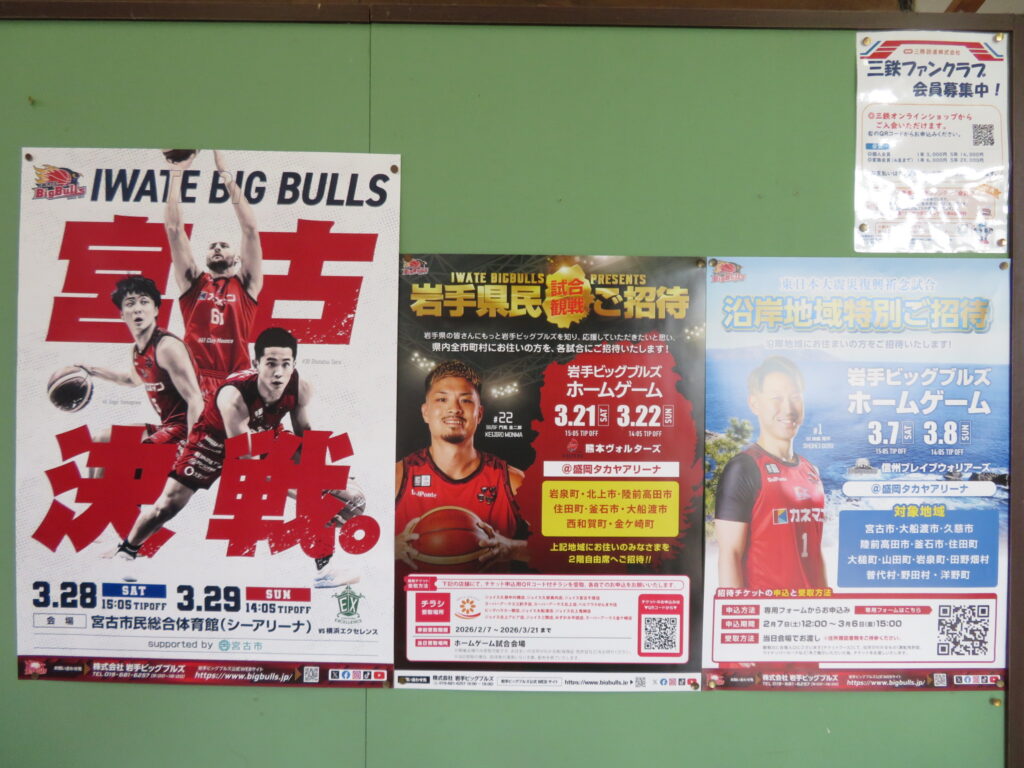 駅の掲示板に「岩手ビッグブルズ」のポスターが貼ってありました。バスケットチームです。ビッグブルズは仙台89ersとは数えきれないほど試合をした仲ですし、うちより強かった歴史もある。がんばって欲しい。宮古のみなさん、盛岡のみなさん、岩手のみなさん、応援よろしくお願いします。