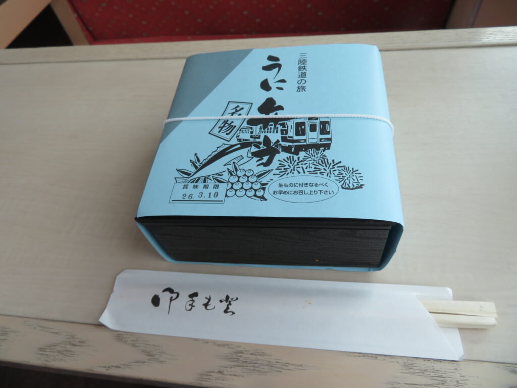そして電車の中で、噂のうに弁当!
