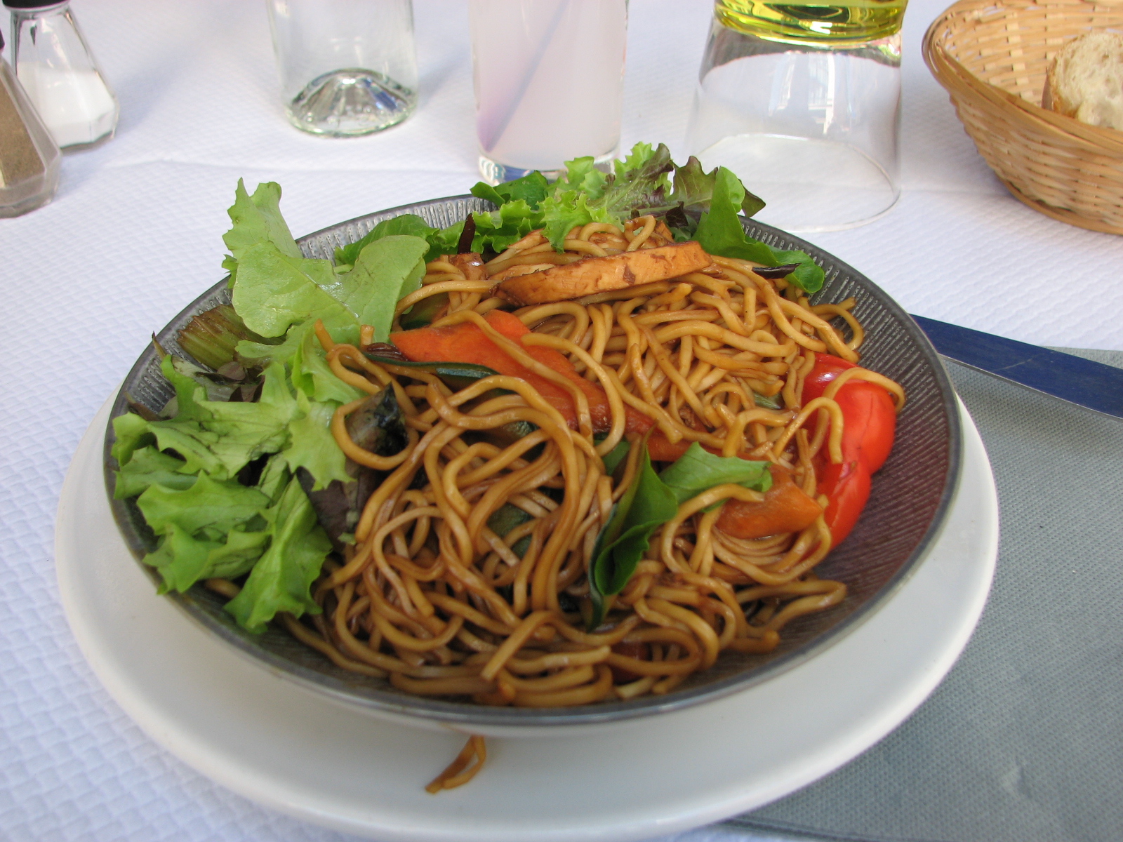 fines nouilles sautees avec ses legumes croquants aromatises accompagnes au choix de