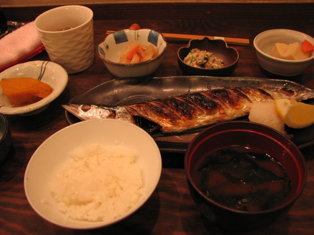 夜ごはんは近所のおばんざい屋さんで。さんま定食。