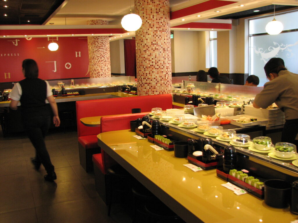 バス停を見つけて目途がたったので、昼ちょっと前だけど、回転すし屋に入ってみる。