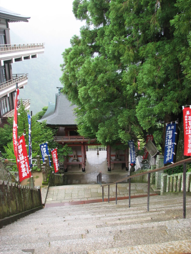 鳥居からずっと下りの石段。(写真は振り返って撮ったところ。鳥居は見えない上にある。)
