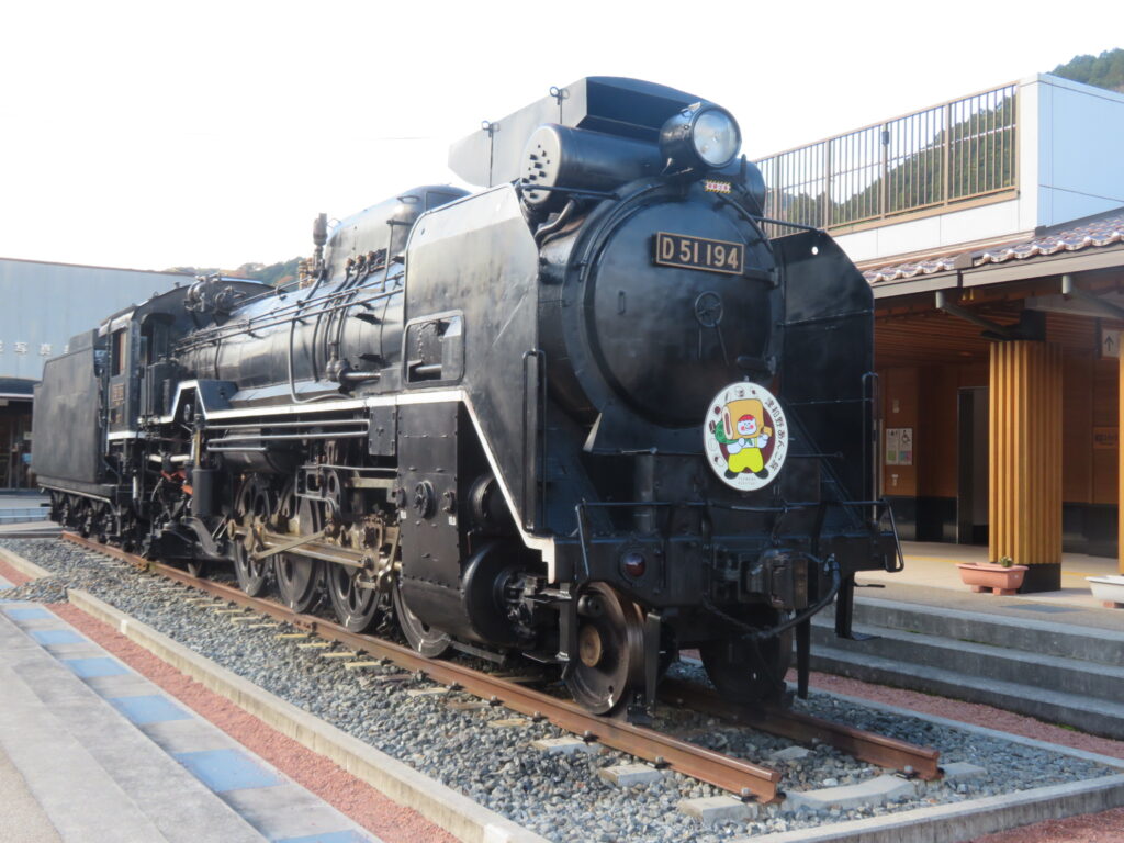 津和野駅前には実際に走っている蒸気機関車とは別に、展示用の機関車が鎮座しています。