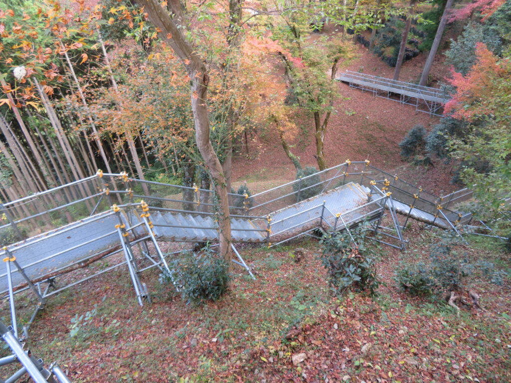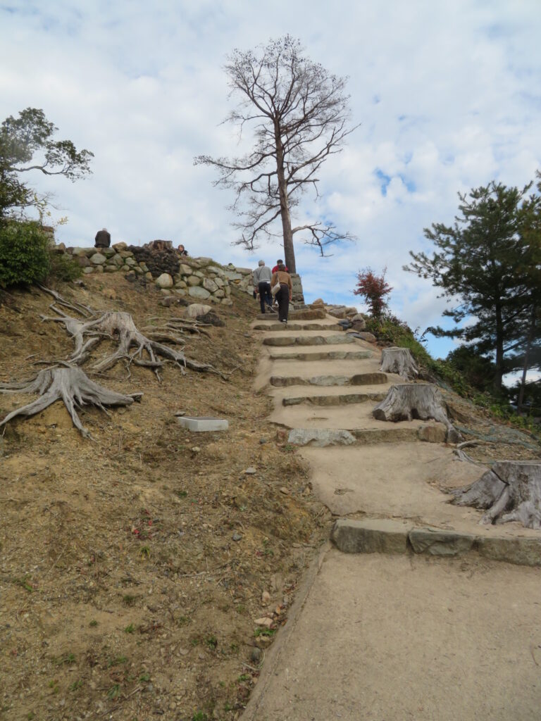 足腰弱い人はちょっと厳しいかなあ……。車椅子、あるいは杖をつきながらはちょっと無理です。とにかく階段をひたすら登る、高低差アリアリのところですから。登れるうちに登っときましょう。