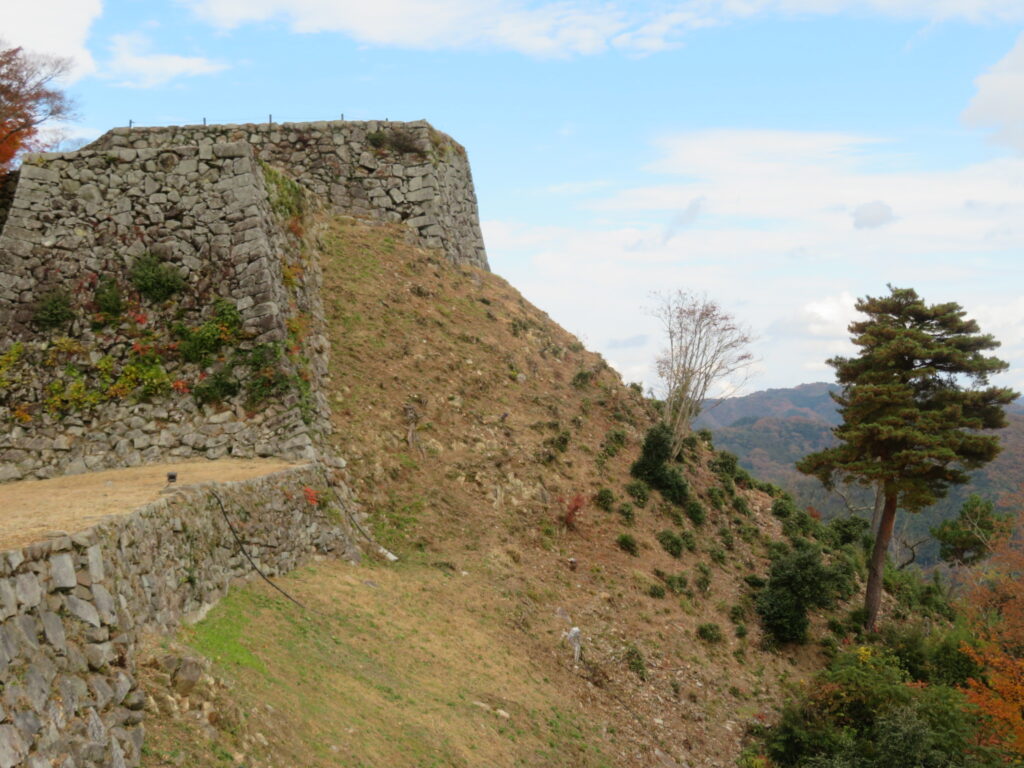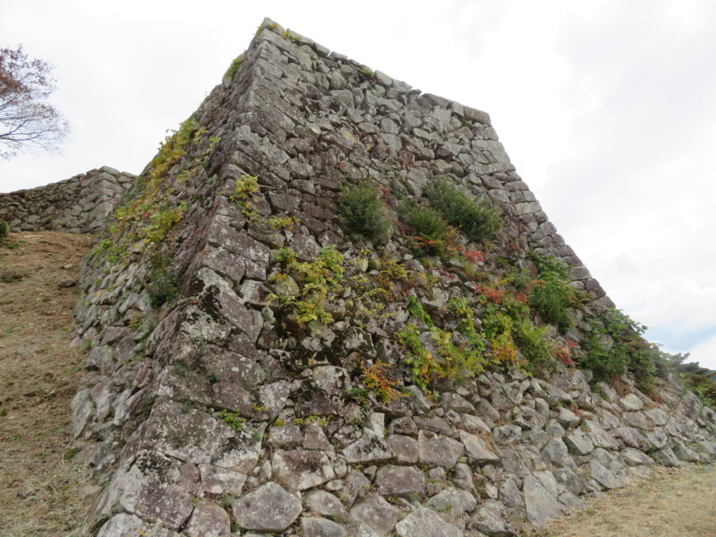 とはいえ、本丸辺りも高低差があって、自分で行って楽しめる石垣という意味ではかなり上位に来る気がする。よくあることで、テレビでドローンの外側からの映像で見ると楽しいけど、実際に行ってみるといまひとつという石垣は多いが、ここは現地に行って、その場所から見える城のナワバリが複雑でけっこう楽しい。この大壁なんてある意味生け花みたいですもんね。