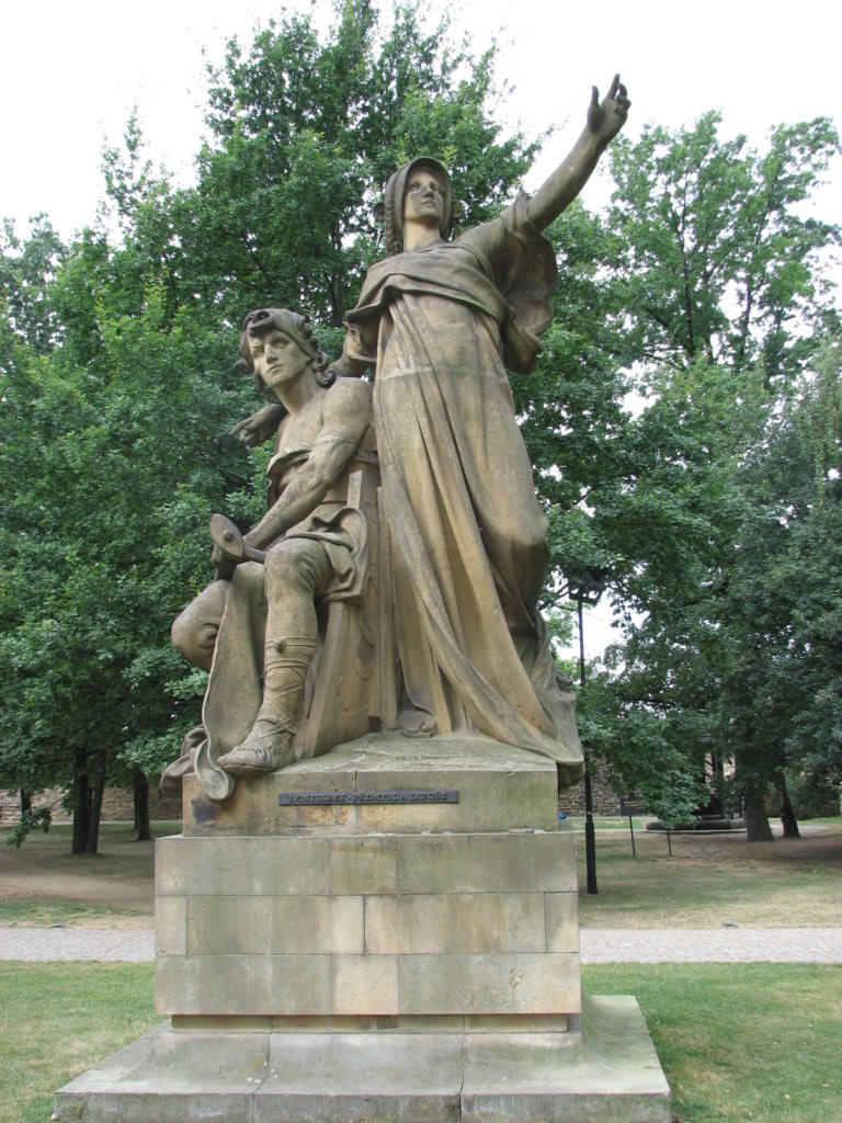 リブシェ(隣の男性は彼女によって王になったプシェミスル)の彫像はこの場所に