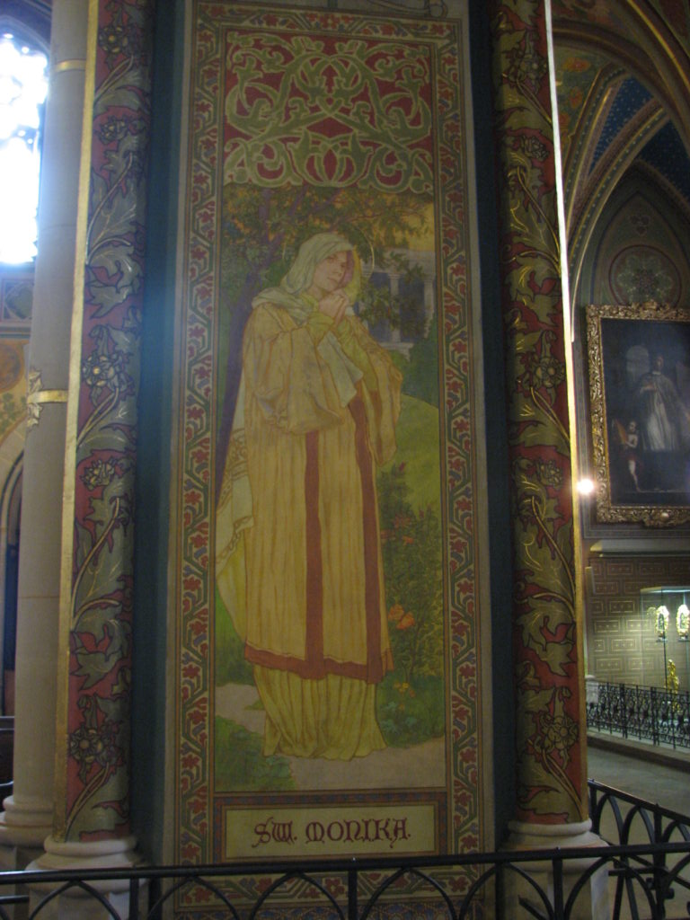そう思って周囲を見直すと、教会の内装がびっしりミュシャ風ヌーボーでデザインされている。