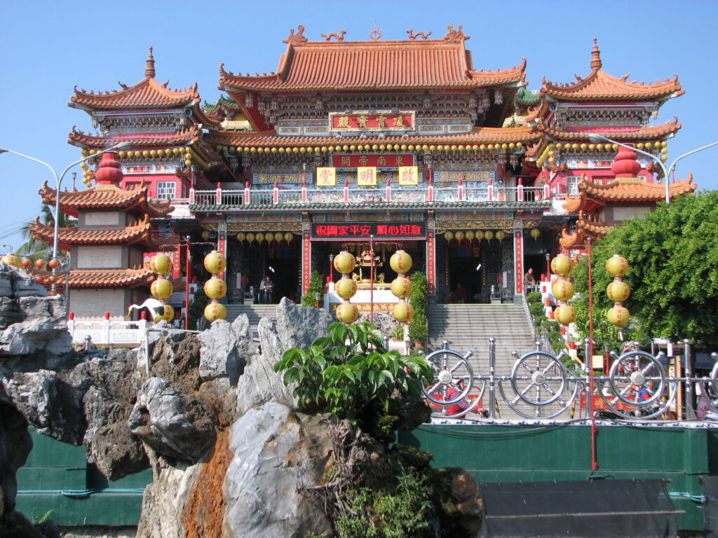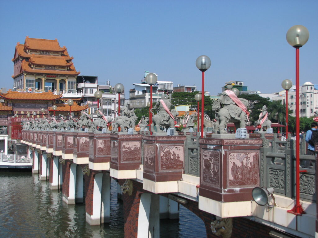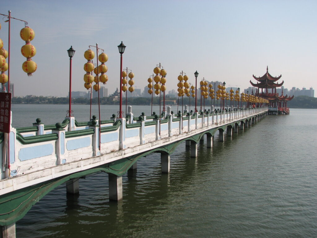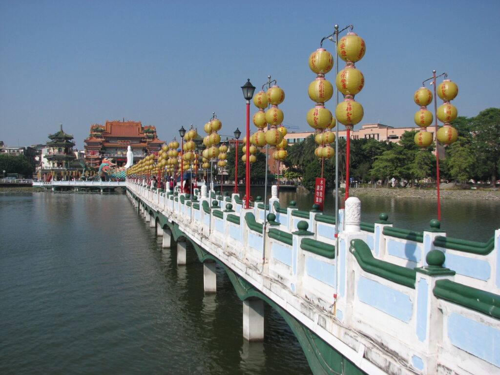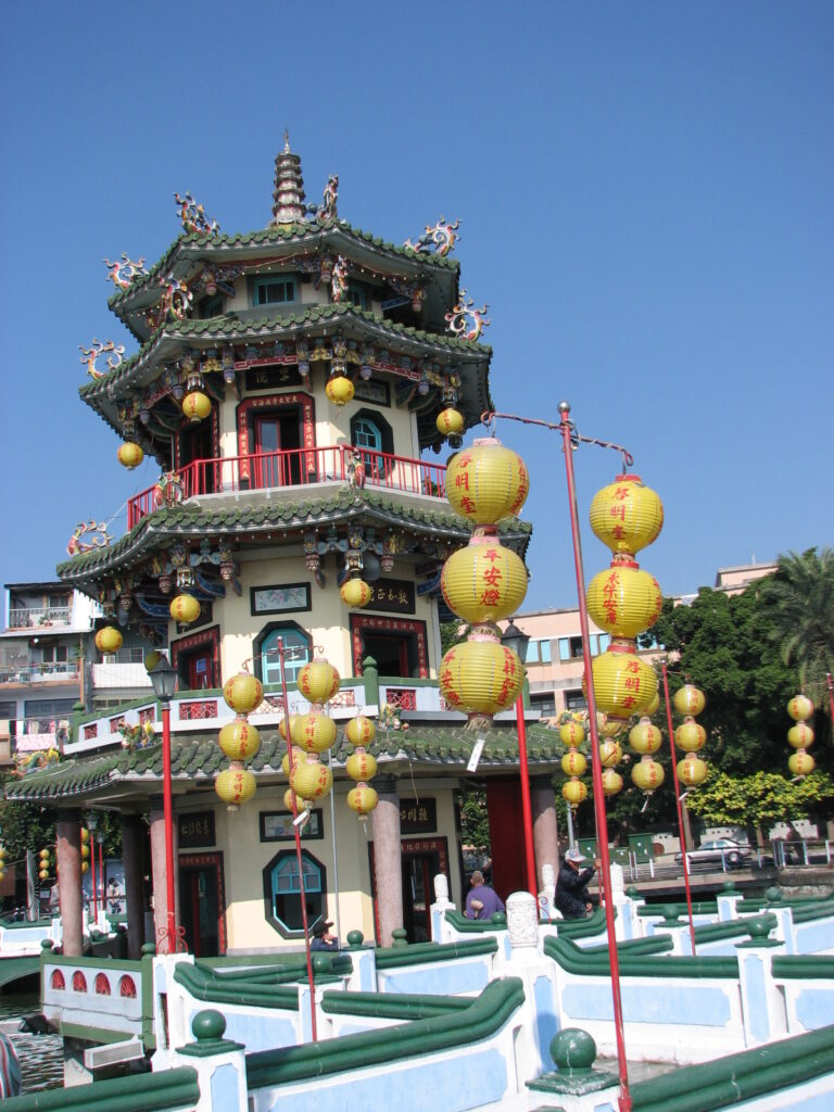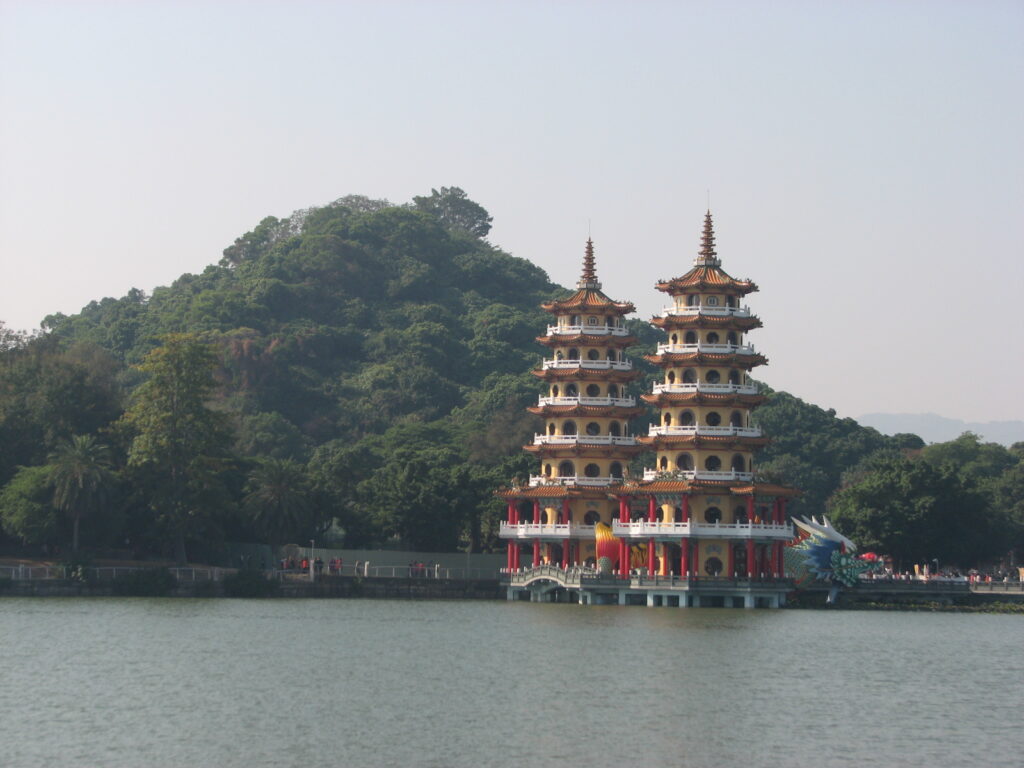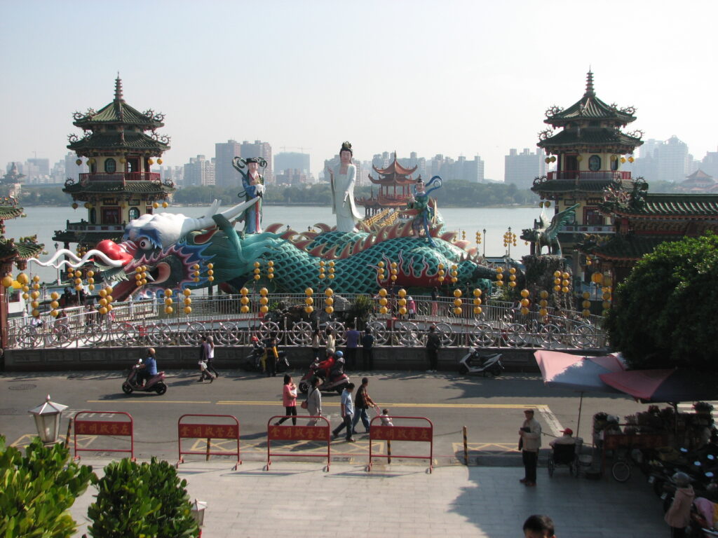 蓮池潭は大きな池のまわりに、いくつかの廟がそれぞれ独立して並んでいる。