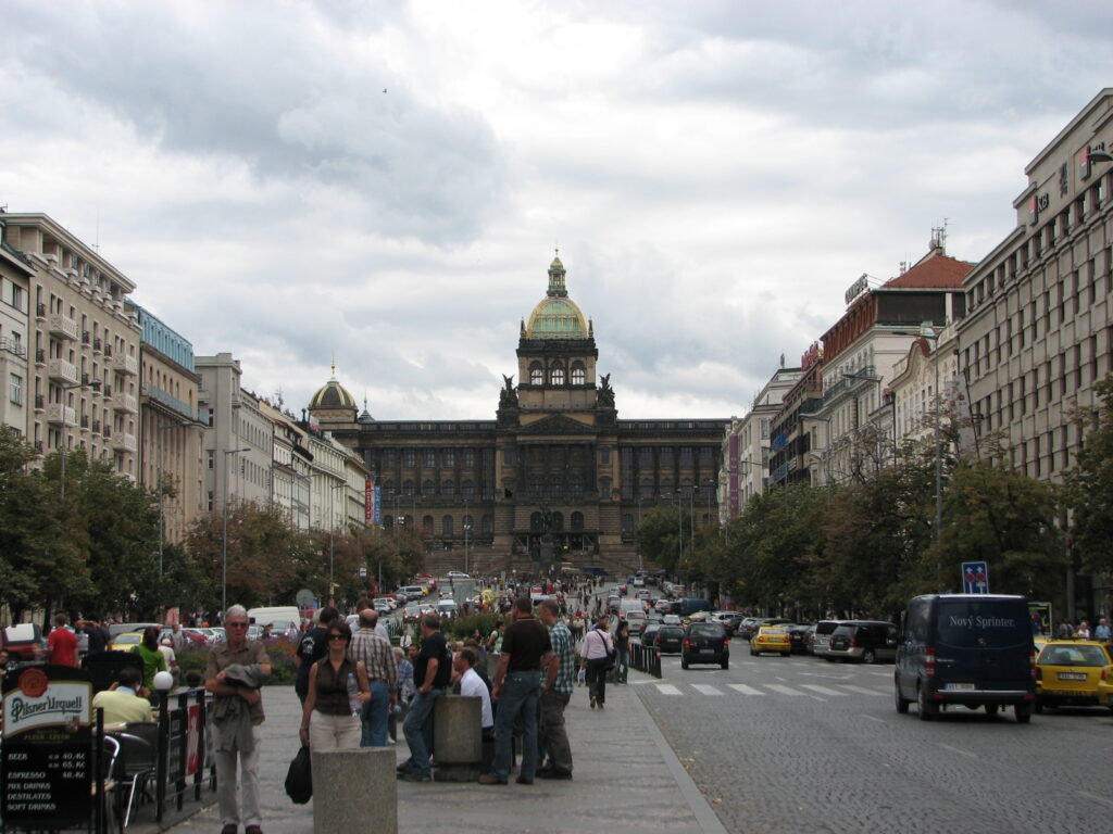 目抜き通りであるヴァーツラフ広場の昼の風景。