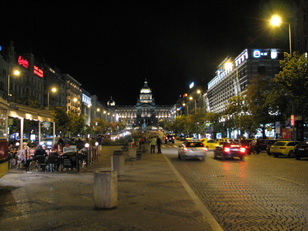 ヴァーツラフ広場の夜の風景。昼間より見栄えがするかも。