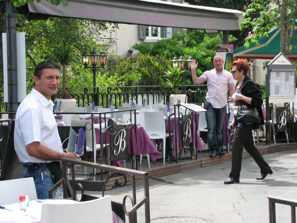 上の写真のクリーム色の壁のレストラン、Cafe Belle vue?に入る。
