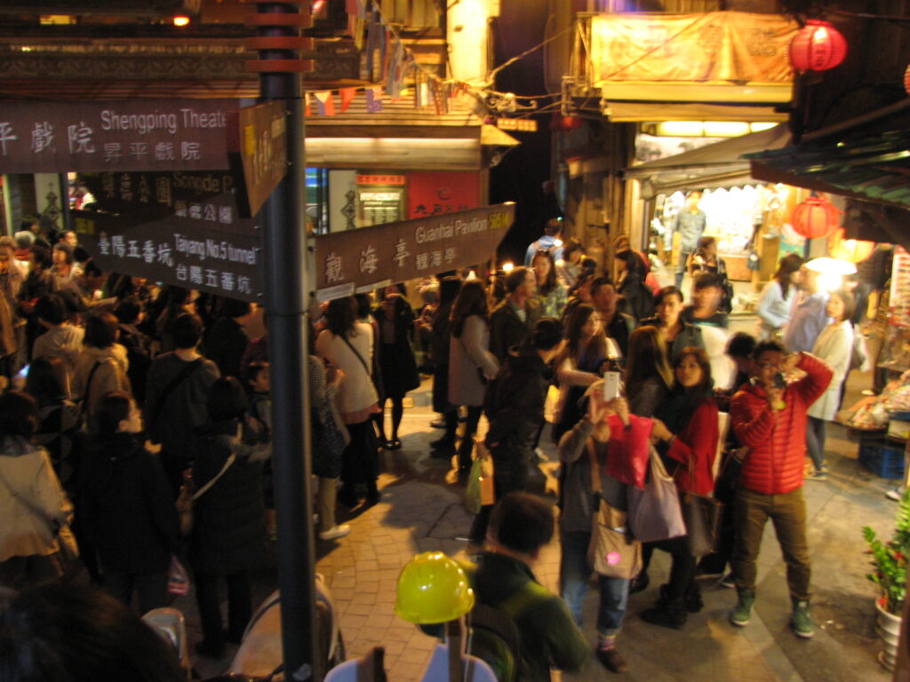 九フンは、両側お土産やさんがびっしりで、静かな情緒というのものはほとんど何もないのだが、