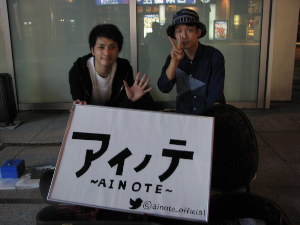 右側の彼はギターを持っている。この日は路上開始早々、高い方の弦が一本切れたらしいよ。