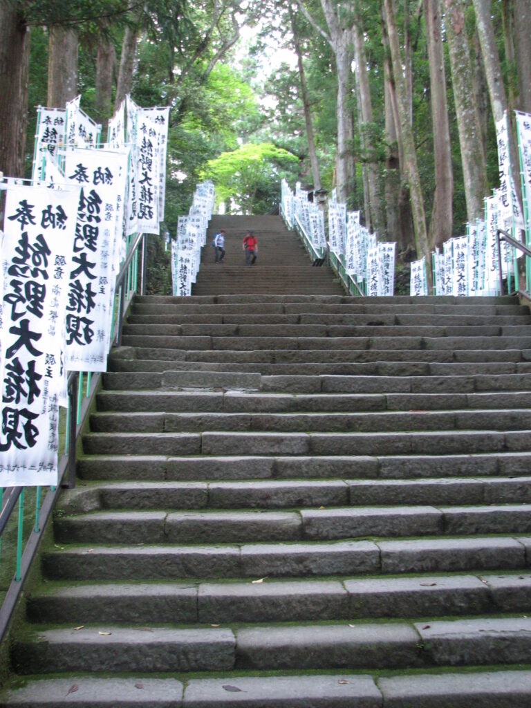 テレビでは、いかにも正面に出ました、これから登ります、というように長い階段を下から撮っていた。