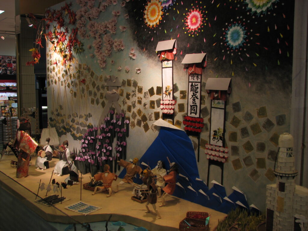 お土産屋さんの一角を使って折紙作品を数々展示している。