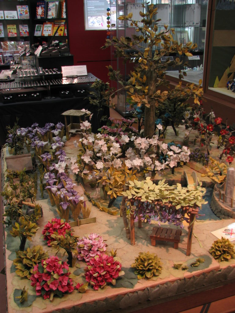 お土産屋さんの一角を使って折紙作品を数々展示している。
