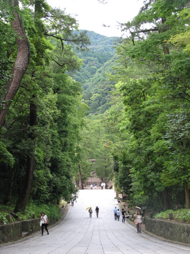 わりと特異な、降りて行く参道。