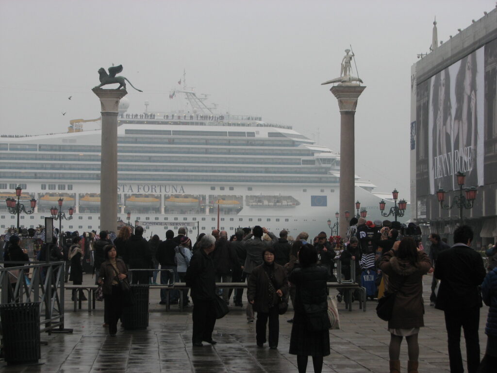 聖マルコ小広場に悠々と姿を現す、超巨大豪華客船。