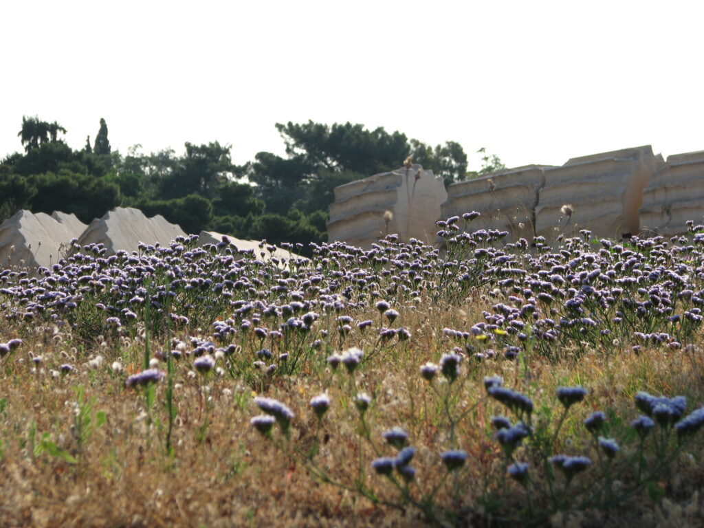 アクロポリスを見上げる。なんか石切り場のようですね、こっちから見ると。