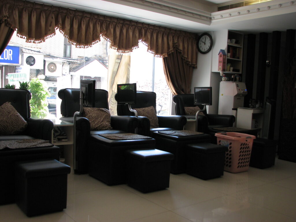 足つぼマッサージは上の写真の椅子に座ってやってもらう。