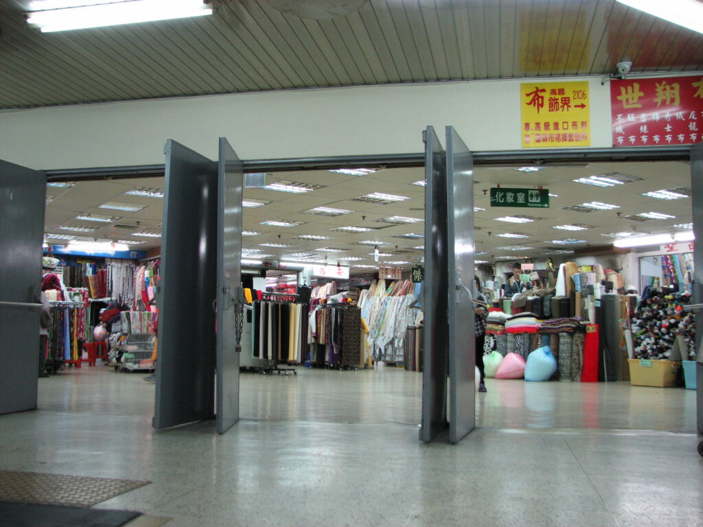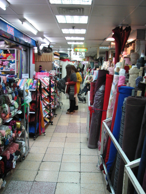 たしかに布屋さんどっさり。昔のマブチとかを巨大にしてぎっしり感がさらに増したようなところ。