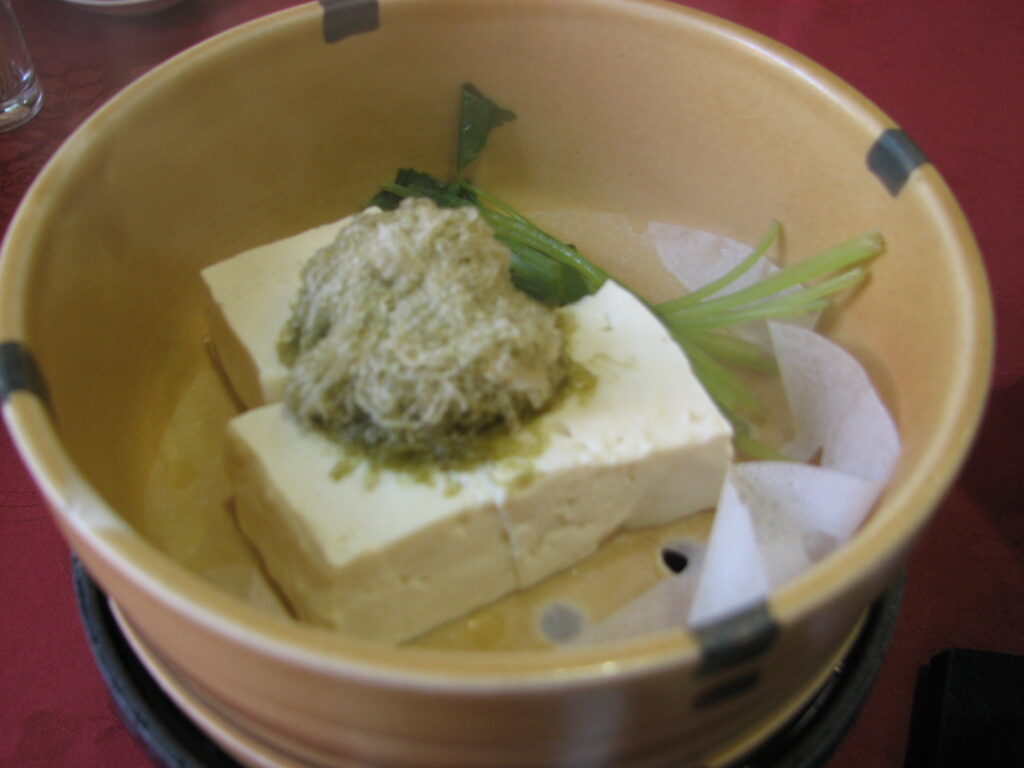 横に寝ている写真の一番奥にある羽釜風の蒸し器?に何が入っているかというと豆腐。