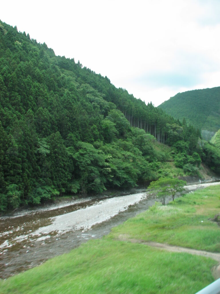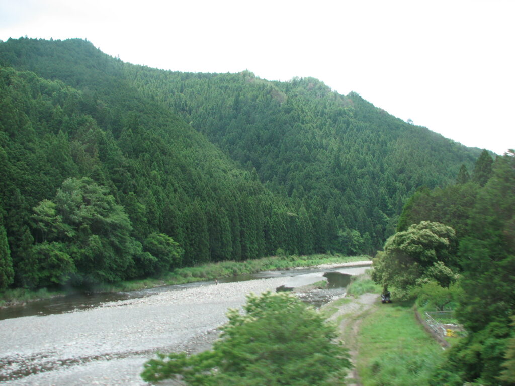 道路から見える紀伊の山地。