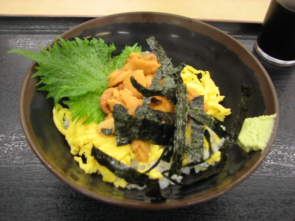 お昼に雲丹丼。量は少な目だけど、たっぷりの雲丹丼は食べるの大変だからこのくらいの量がちょうどいい。