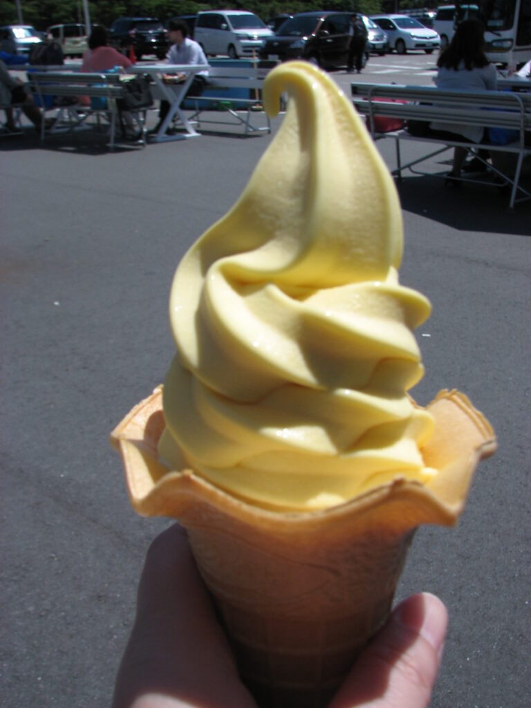 みかんソフトも食べた。この日は暑い日で、ソフトがあっという間に溶ける。