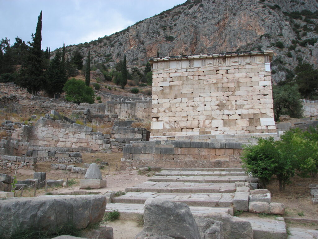 右側に小さく見える壁のある建物は、都市国家アテネの宝物庫の復元。