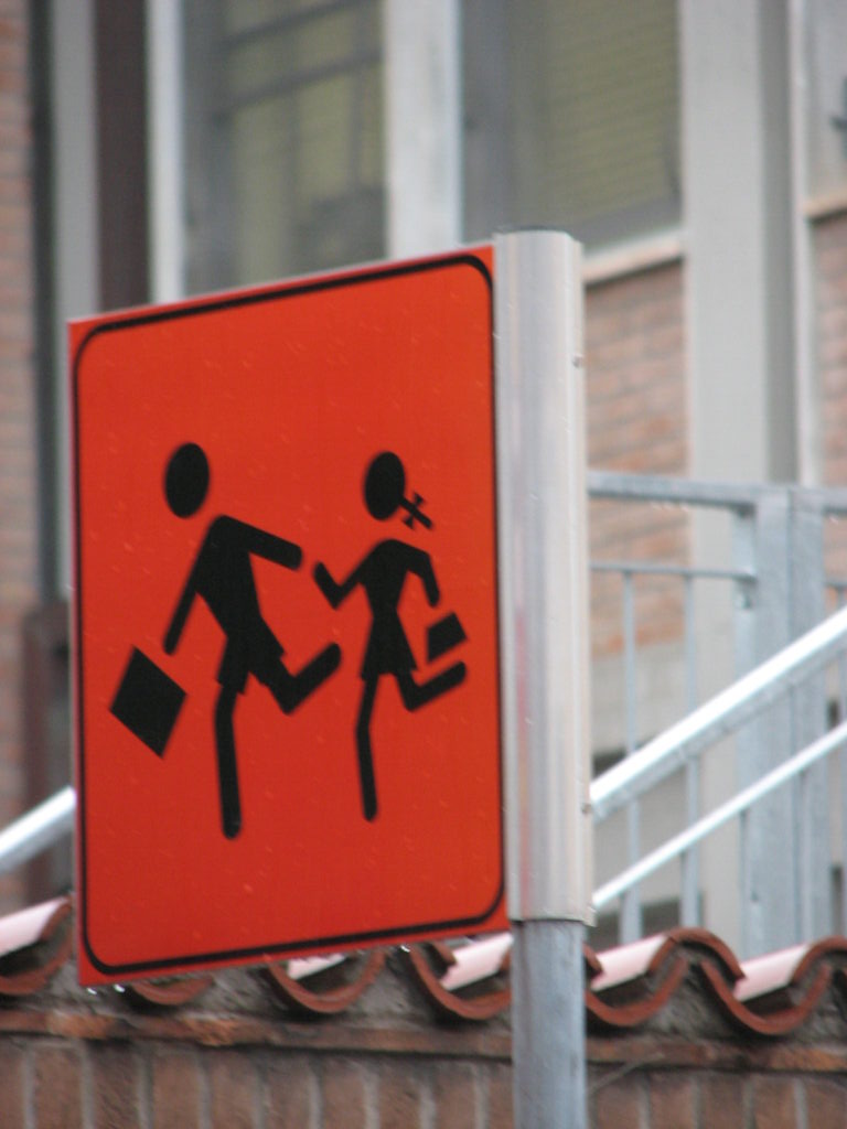 多分「通学路」の標識なんだろうけど、いかにも楽しげなピクトグラムですよね。