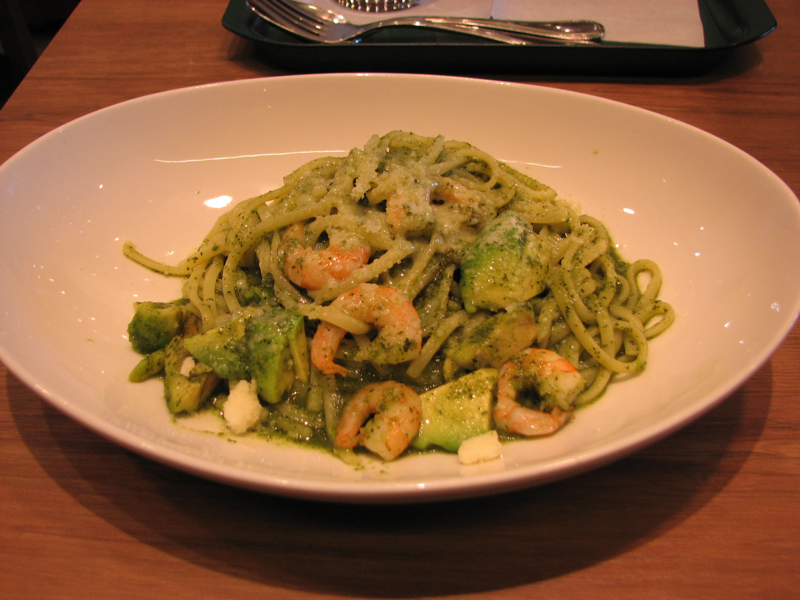 エビとアボカドのパスタ。美味しかった。