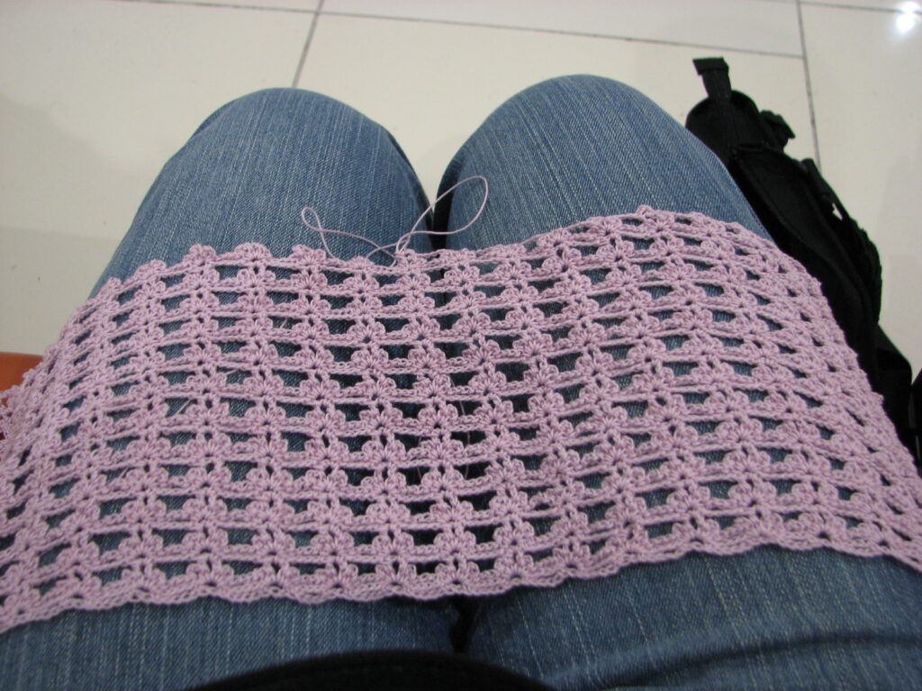 今回の乗継は3時間ほどで、実際の待ち時間は2時間弱なので、プロントの後はまた編み物をして