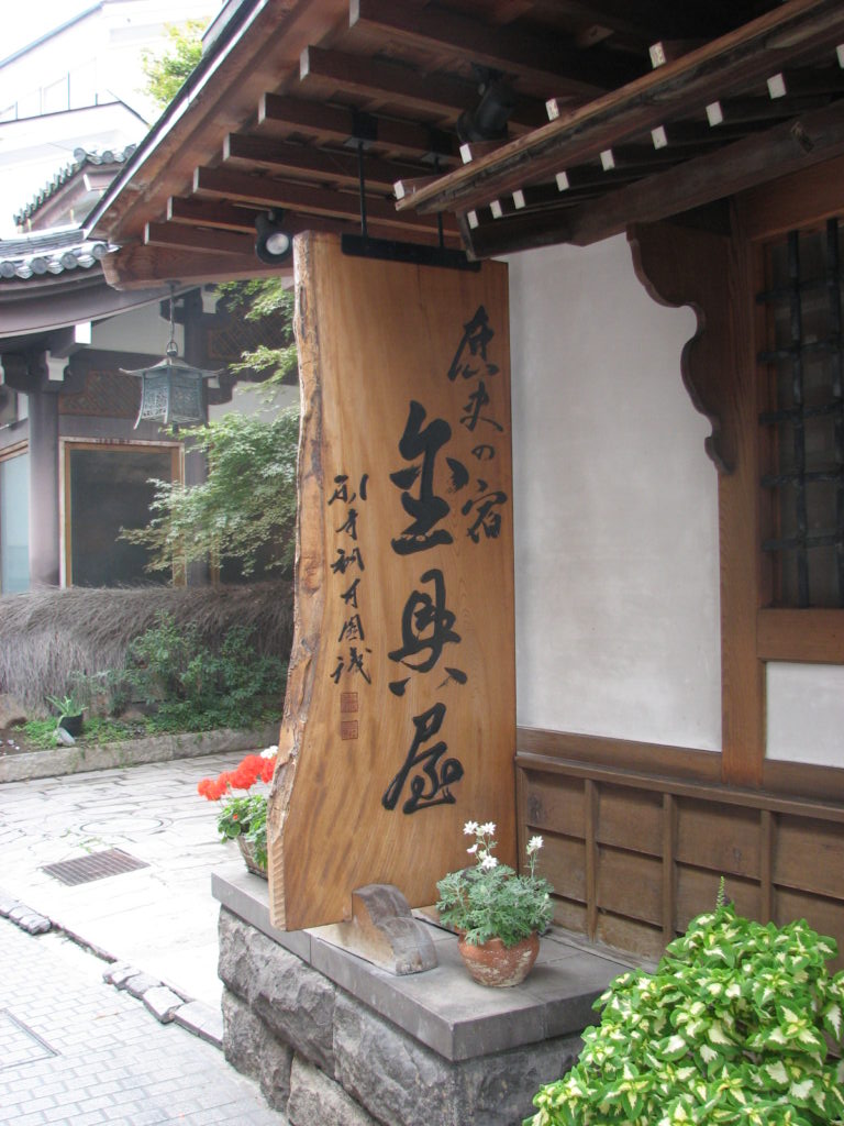 金具屋の看板。やはり昔ながらの旅館なので、宿泊客以外が入って利用できるような