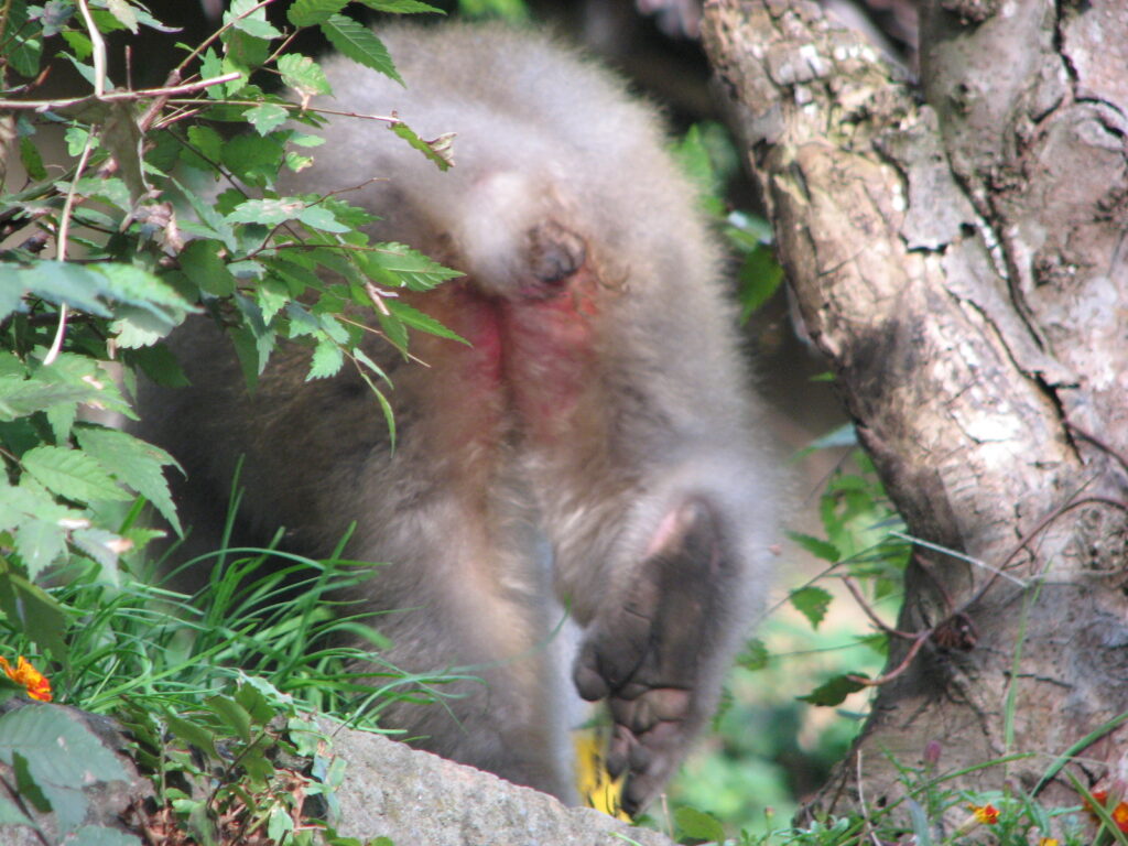 連中はけっこうすばやいので写真がちゃんと撮れなかった。猿のオシリ。