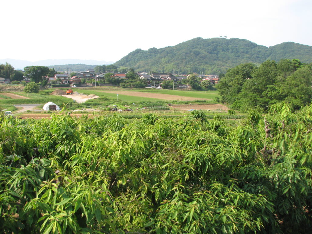 右の山が、古代には「神名樋野」(かむなびぬ)と呼ばれていた神山、茶臼山(の筈)です。