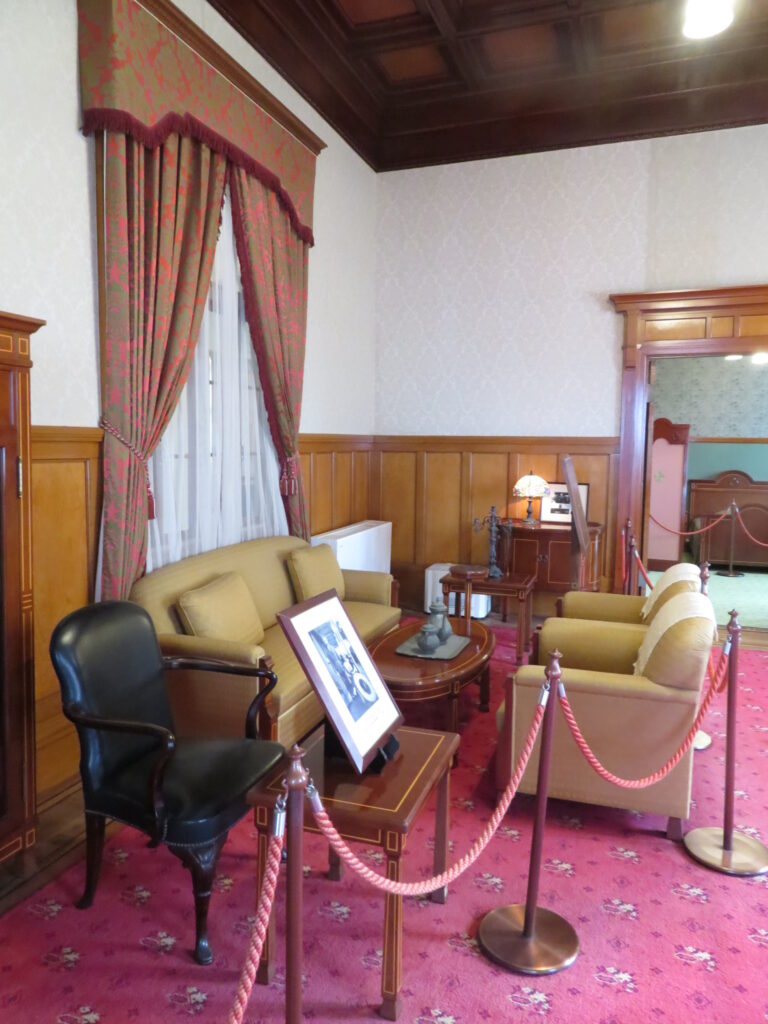 2階だけが有料で、150円。アインシュタインが宿泊した部屋などを見せていました。1階には「三井倶楽部」というレストランがあり、ちょっと入りたいなーと思っていたけどこの日は貸し切りでした。まあちょっと高めだからいいか。