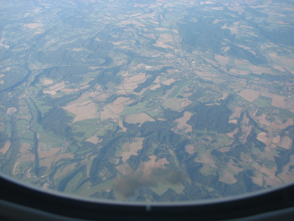 着陸直前。多分プラハ市街上空。リアルグーグルアース。