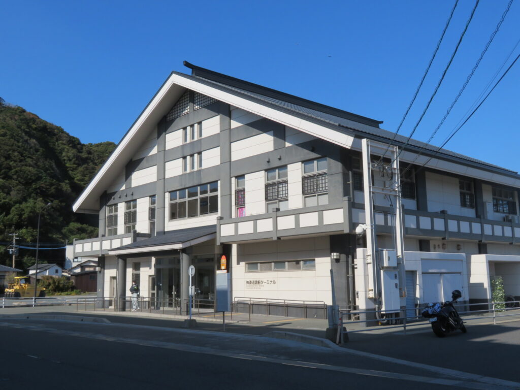 中津宮のある大島へ行く船は、神湊から出る。車で10分。駐車場は有料です。