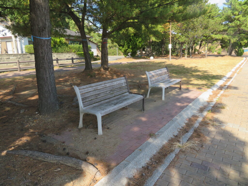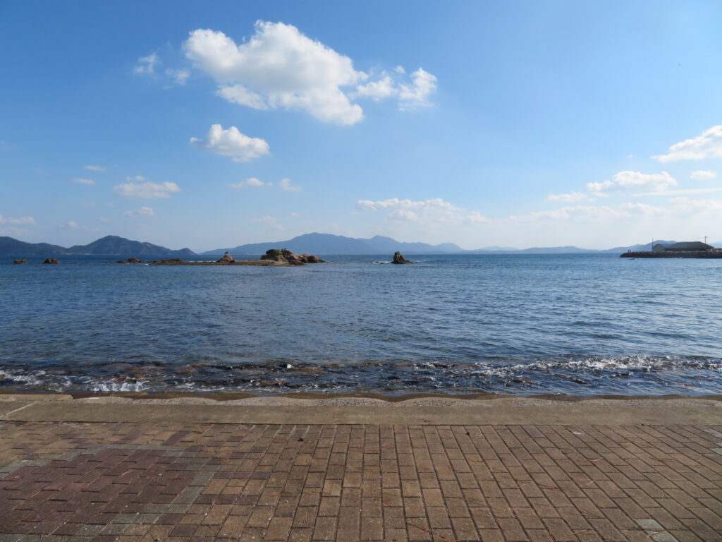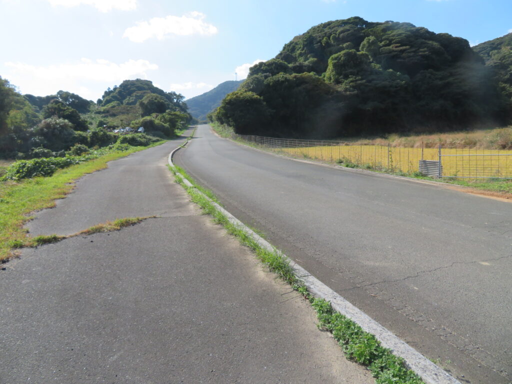 ここから沖津宮遥拝所へ向かいたいと思います。本当は島の東の端の加代海岸に行ければなあ……と思ったが、徒歩だと遠いのよ。行けば行けたかもしれないけど、弁財天から加代海岸まで行くと2キロ。さらに加代海岸から沖津宮遥拝所まで2キロ。島はまあまあ高低差があるし、遥拝所へ行ってから帰り道がある。いろいろ考えると自信がなくて止めました。