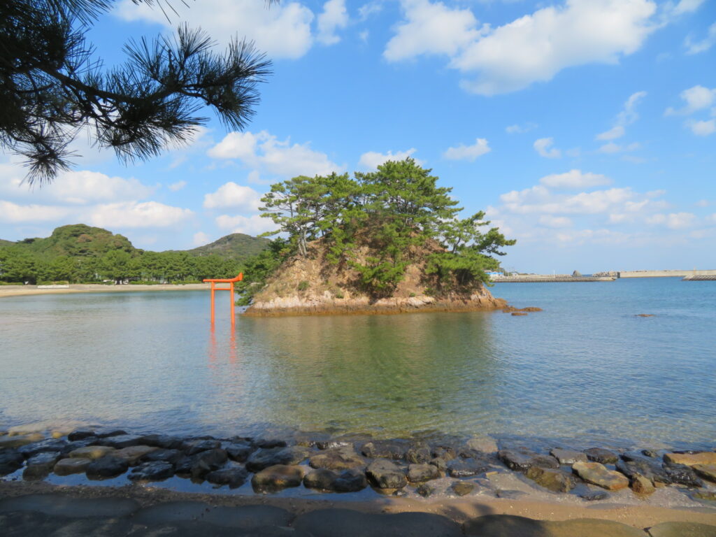 島へ一緒に渡ると縁が結べるという話もあるので、一説には縁結びの神さまという意見もあります。まあ良い場所の良い神さまってことでいいですね。