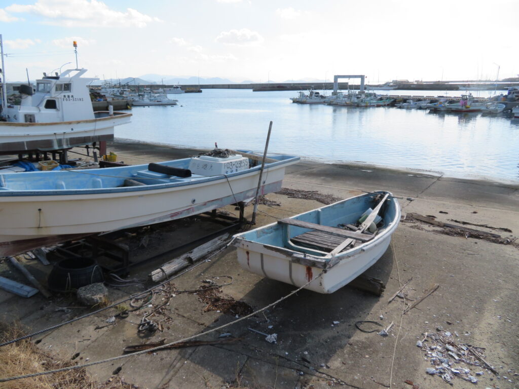 砂浜をずっと歩いて行くと、第二大島漁港。