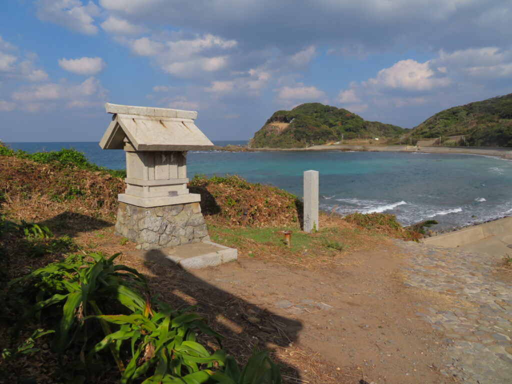 ――この島に来るにあたって、沖津宮遥拝所は来るかどうか迷った場所。主目的は中津宮だと思っていたし、それならその周辺を歩く程度でいいかと思っていたし。遥拝所は港からまあまあ遠いんですよね。2キロくらい。往復4キロ。