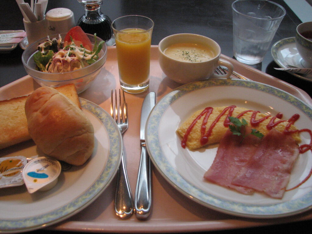 ……って、だいたい一日は朝食から始まるもんですが、旨かったんだよ、オムレツもパンも。
