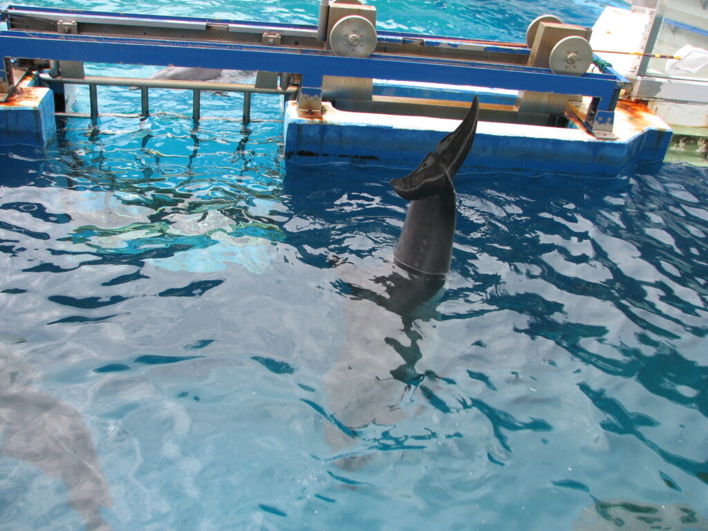 ちなみに、このイルカはずっとこんな風に倒立の練習をしていました。